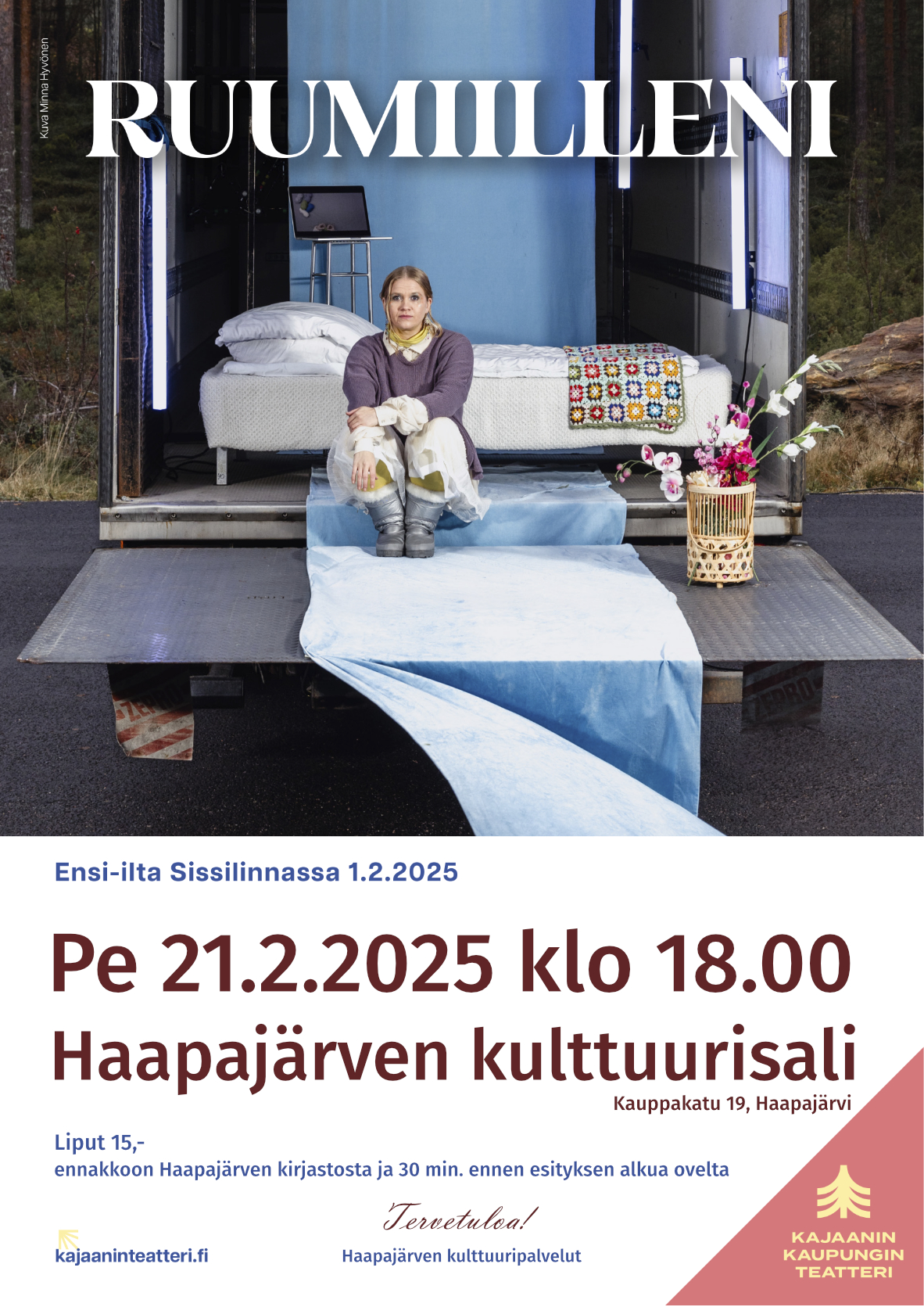 Liput 15,- ennakkoon Haapajärven kirjastosta ja 30 min. ennen esitystä ovelta. Suosittelemme maksukortin käyttöä. Kaikukortti käy.